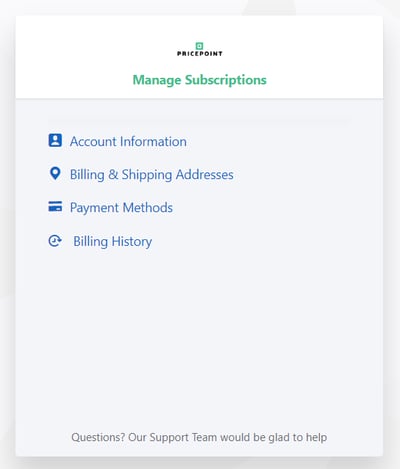 The Pricepoint Billing Portal makes it easy for you to manage your account, update billing and shipping information, add or modify payment methods, and review your past and current invoices. Follow the steps below to access the billing portal.