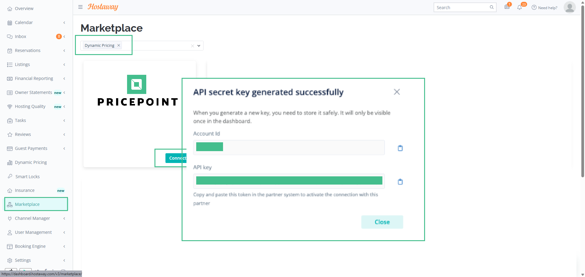 - Send Account ID and API Token at onboarding+hostaway@pricepoin.co.